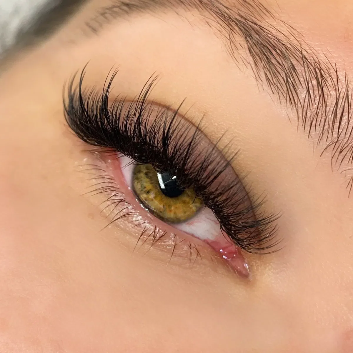 Bei der Volumentechnik werden mehrere feine Extensions als Fächer auf eine Naturwimper appliziert. Dadurch entsteht eine deutlich höhere Verdichtung bei gleichzeitig geringem Gewicht.